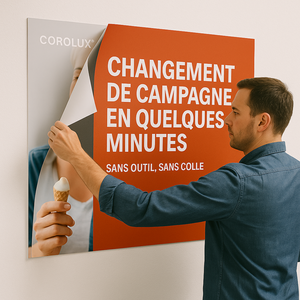 Avec le système d’affichage COROLUX, vous changez vos campagnes rapidement, en toute sécurité et sans installation externe.